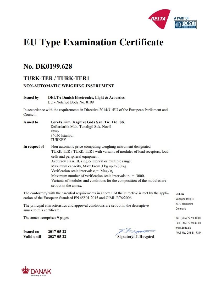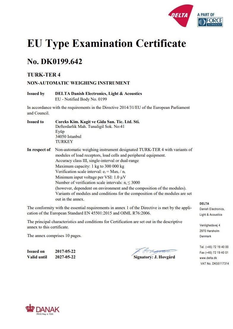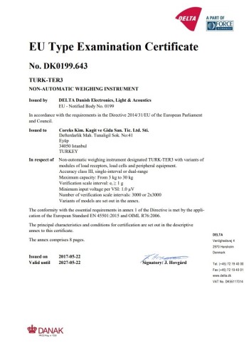 Belgelerimiz - TÜRKTER Tartı Terazi Baskül Endüstriyel Perakende Tartım Sistemleri İstanbul